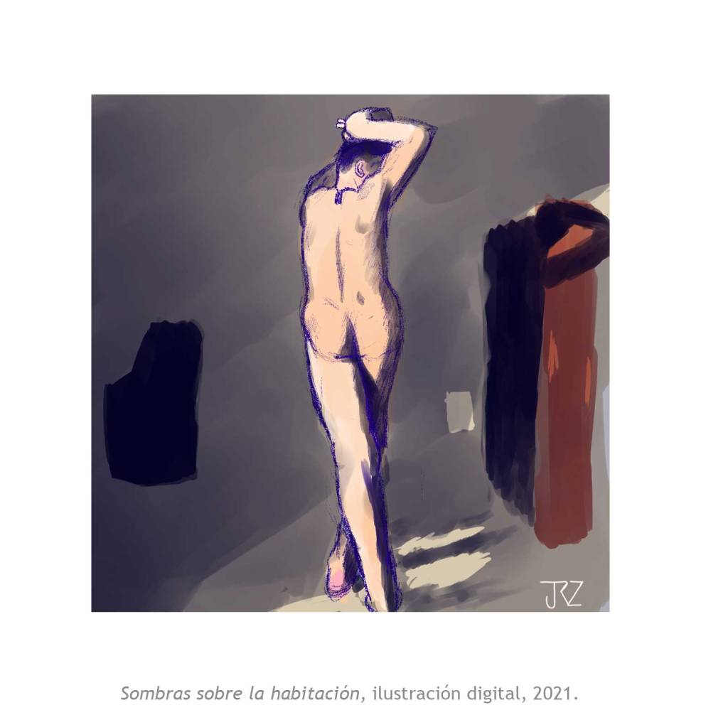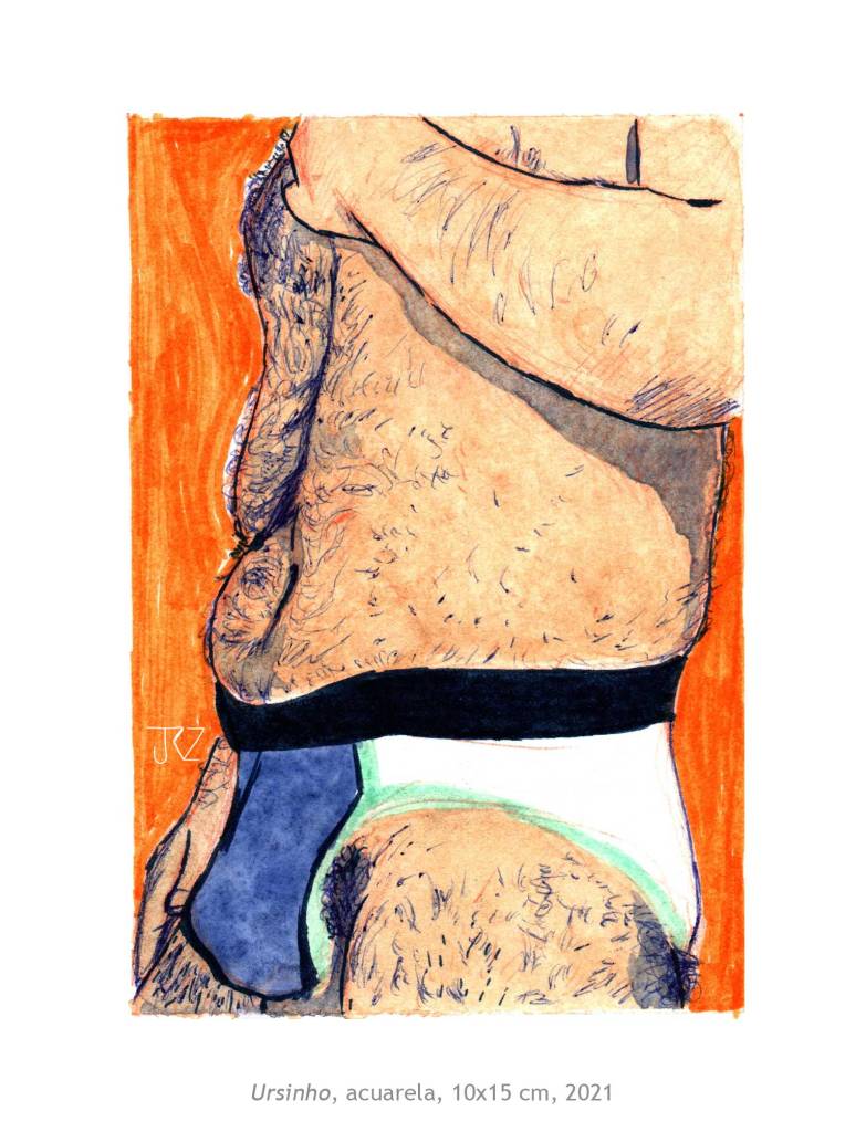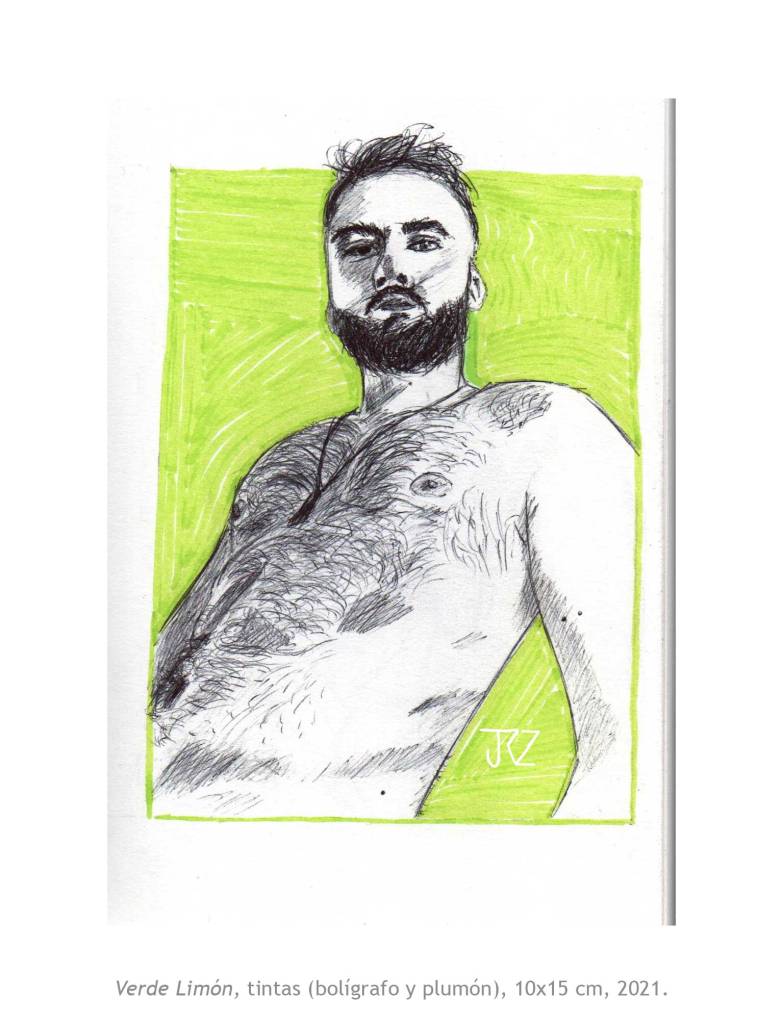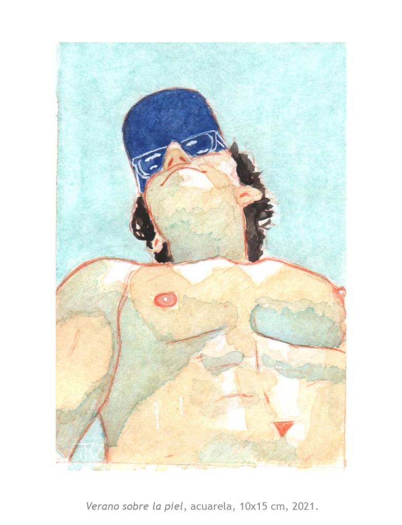La muestra Morado Coqueto de Josh Rodríguez reúne siete piezas entre ilustración digital y acuarela en las que nos deja ver su interés por la masculinidad. Su técnica del dibujo y el uso del color, entre lo pop y lo naif, muestran una masculinidad más relajada y sensual. Cuerpos más reales, con vellos, lonjas y espinillas que viven y expresan su belleza con libertad.